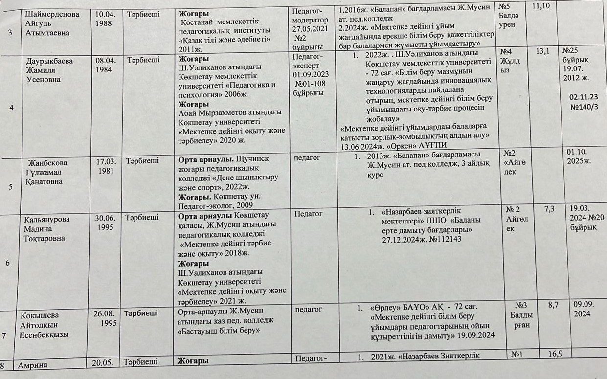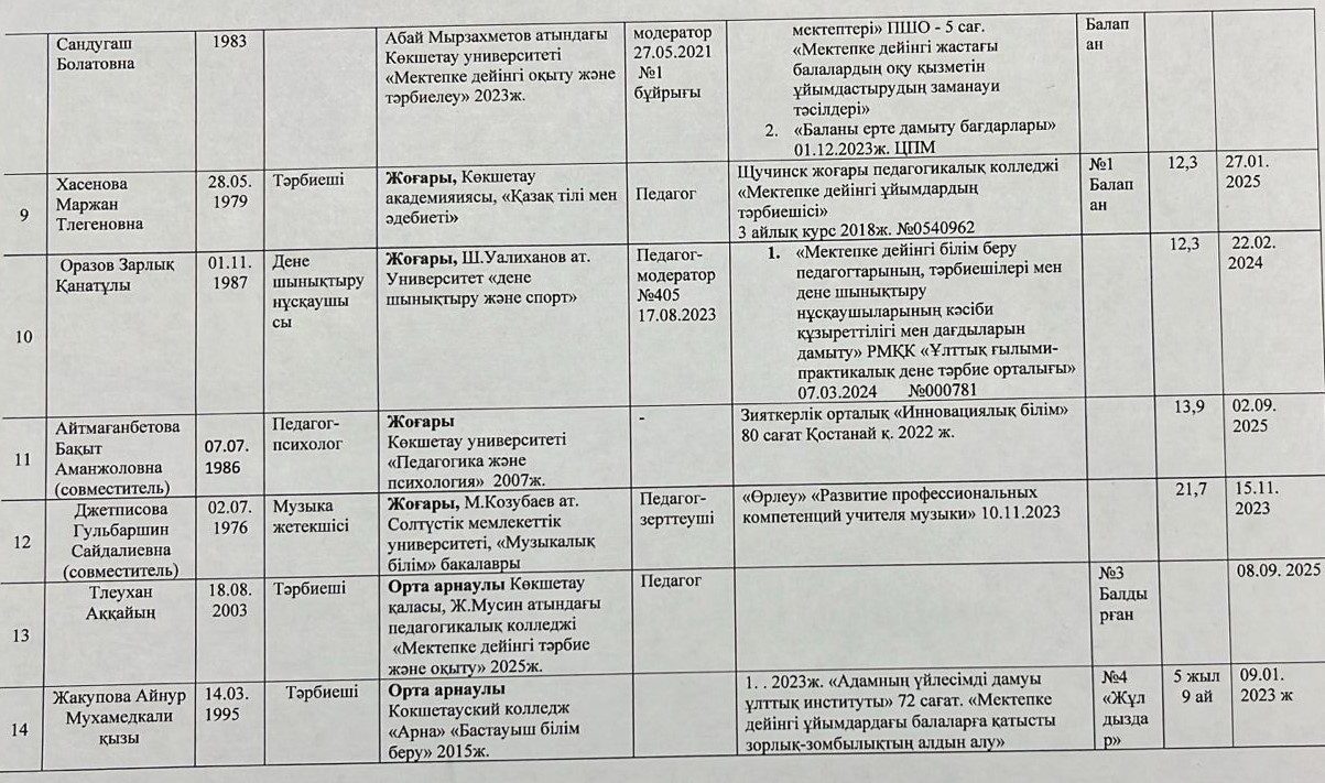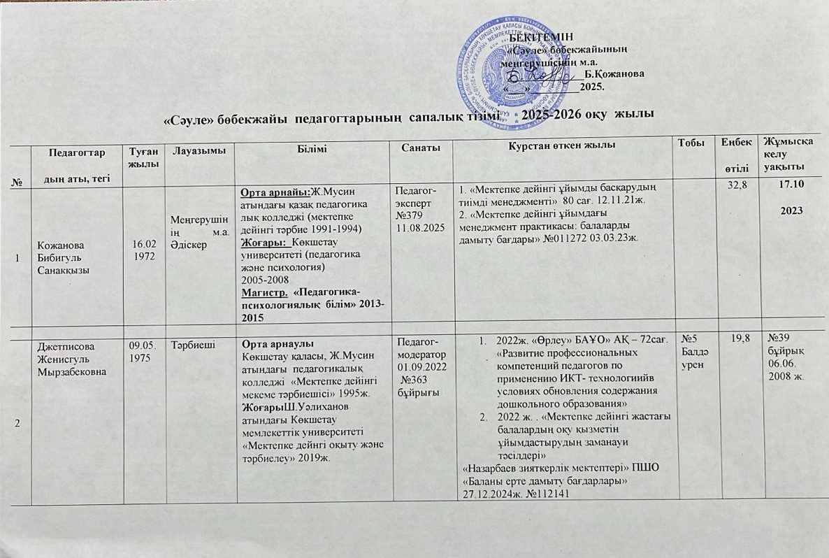 2025-2026 оқу жылының педагогтердің сапалы тізімі