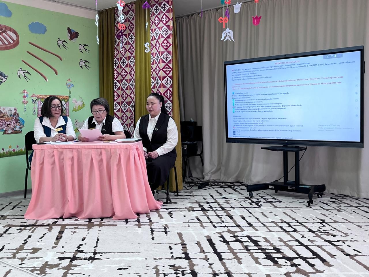 1 сәуір күні бөбекжайда №5 "Балдәурен" мектепалды тобының ата-аналарына арналған жиналыс өтті. жиналыс "Жүректен-жүрекке" атты педагог-психолог Б.Айтмағанбетованың тренингімен басталды. Бөбекжай меңгерушісі Б.Кожанова ҚР Оқу-ағарту министрінің жаңа нұсқалығына сәйкес 2026ж. 30.03. №2-20-6/2297 хатына енгізген өзгерістері туралы ақпаратпен ата-аналарды таныстырды. 1 сыныпқа құжаттарды қабылдау 10 маусымнан 31 тамыз аралығында жүргізілетіні айтылды. Тәрбиеленушілерді балабақшадан шығарып, 1-сыныпқа қабылдау тәртібі туралы түсіндірді.