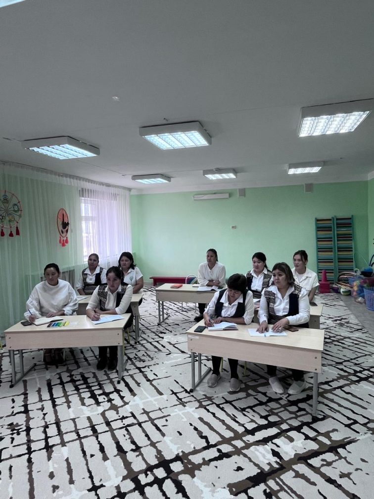 2025 жылдың 17 қазан күні бөбекжайда "Балабақшада заттық дамытушылық ортаны ұйымдастыру ерекшелігі" тақырыбында әдіскер Б.Кожанова педагогтар арасында бақшаішілік семинар өткізді.