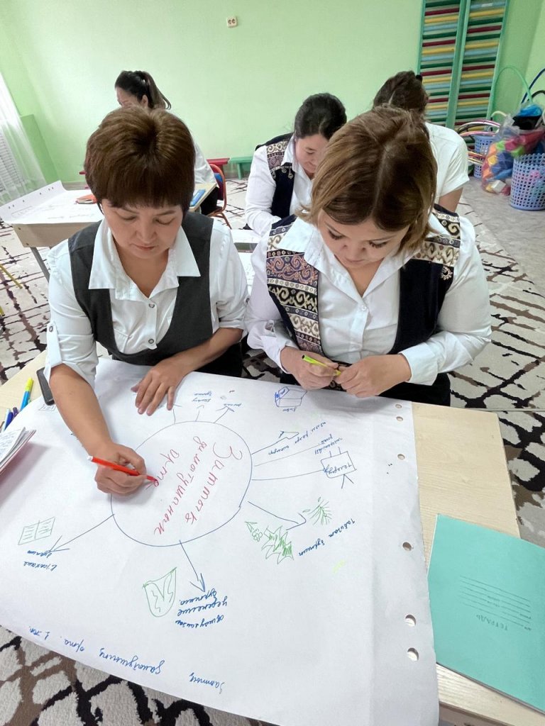 Мақсаты: балабақша педагогтарының мектепке дейінгі білім беру стандартына сәйкес топтарда заттық дамытушылық орта құруға негіз болатын теориялық білімдерін тиянақтау.